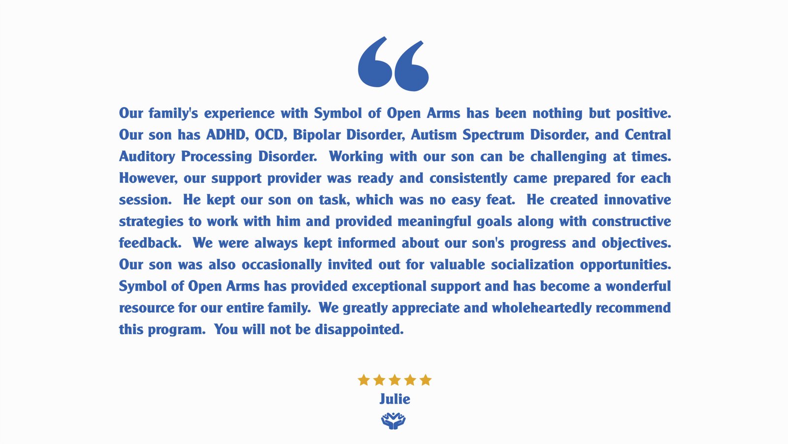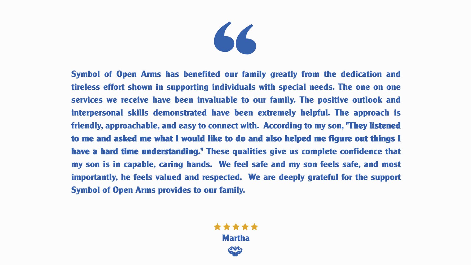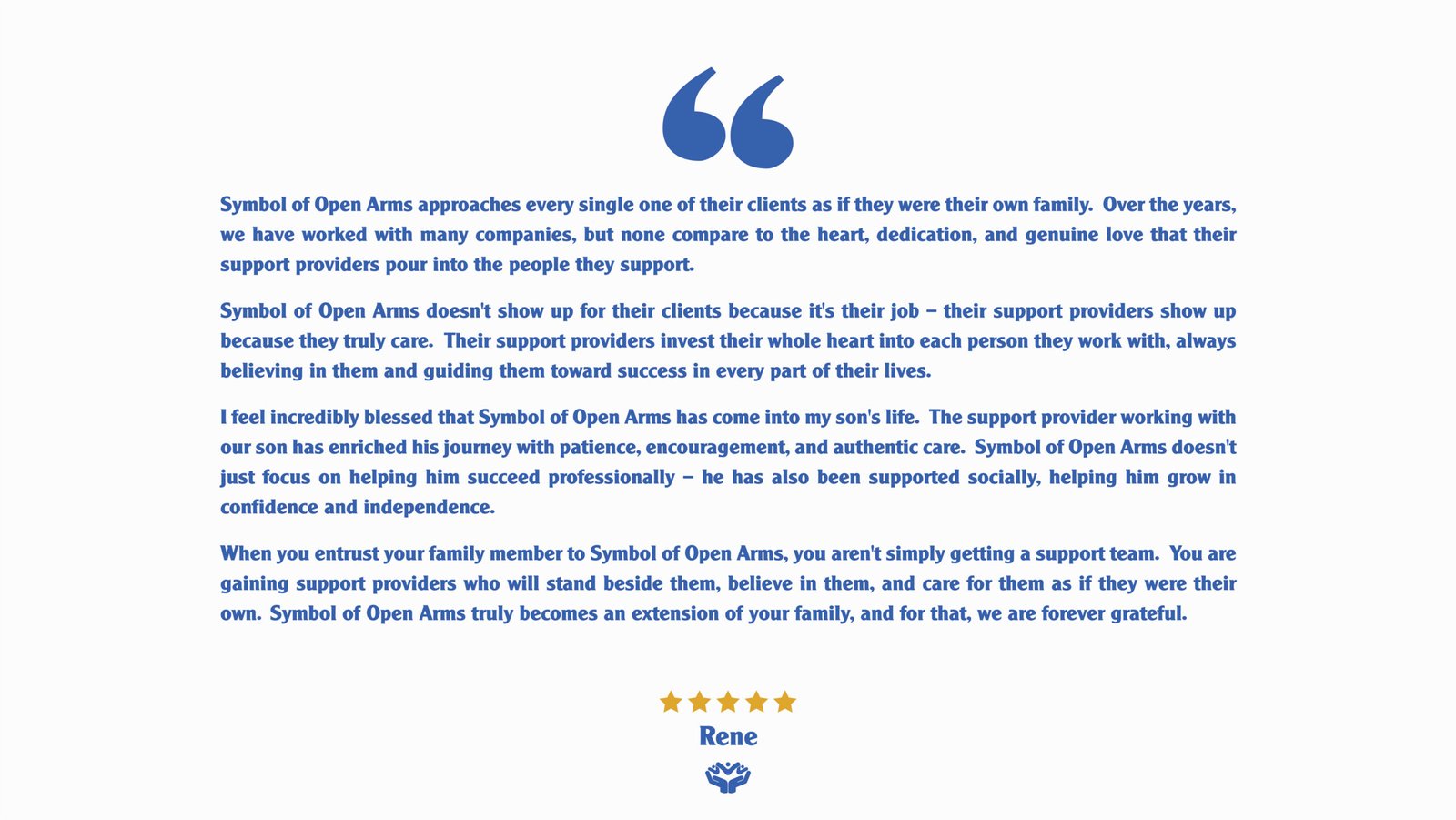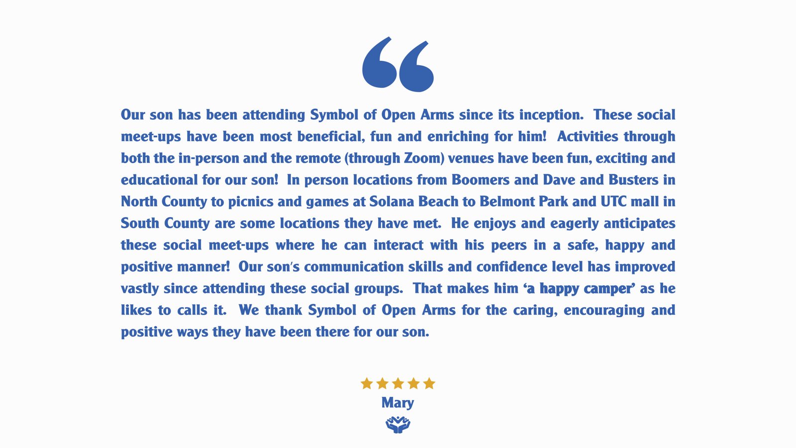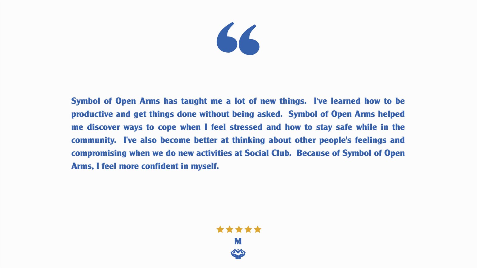 Symbol of Open Arms is a Southern California based enrichment program dedicated to empowering young adults through older adults on the autism spectrum and adults with intellectual and developmental differences.